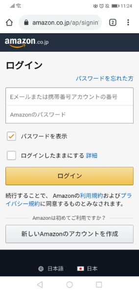Amazonのアカウントを持っている場合はログイン・持っていない場合は新しく作成する
