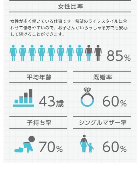 電話さえあればどこに住んでいても・何時でも働けるため、旦那さんが転勤族・子育て中の女性に大人気なんですよ!実際に電話占いヴェルニ(下記のデータ)でも、子持ち率は70%!1,000人くらい在籍しているので、700人くらいはママさんって感じですね。