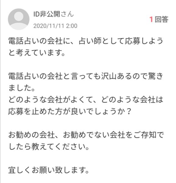 | 業務内容 | 電話鑑定(任意でメール鑑定) |