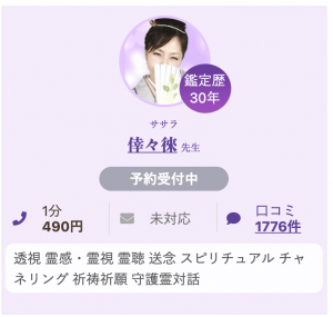 | 得意な相談内容 | 恋愛と宗教的(霊的)、仕事の相談 |